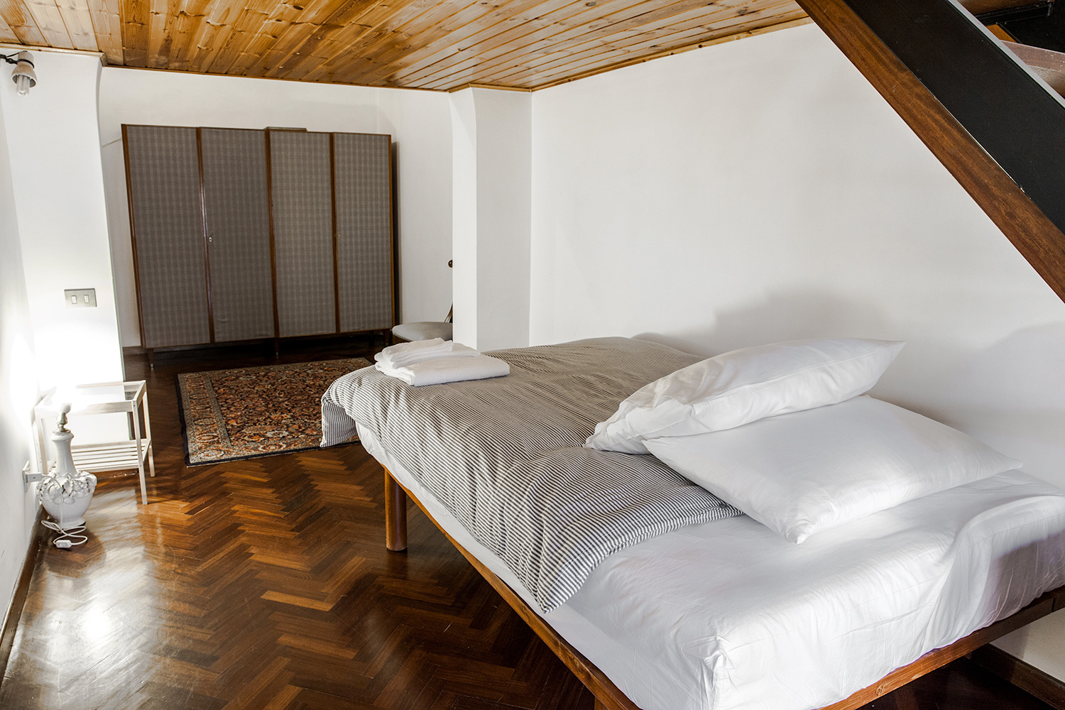 Luminosa e pratica รจ una camera disposta su due livelli, con due zone letto separate, fornita di uno spazioso armadio, pavimento in parquet. I letti sono forniti di guanciali e set di lenzuola e coperte adatti per la stagione di visita.