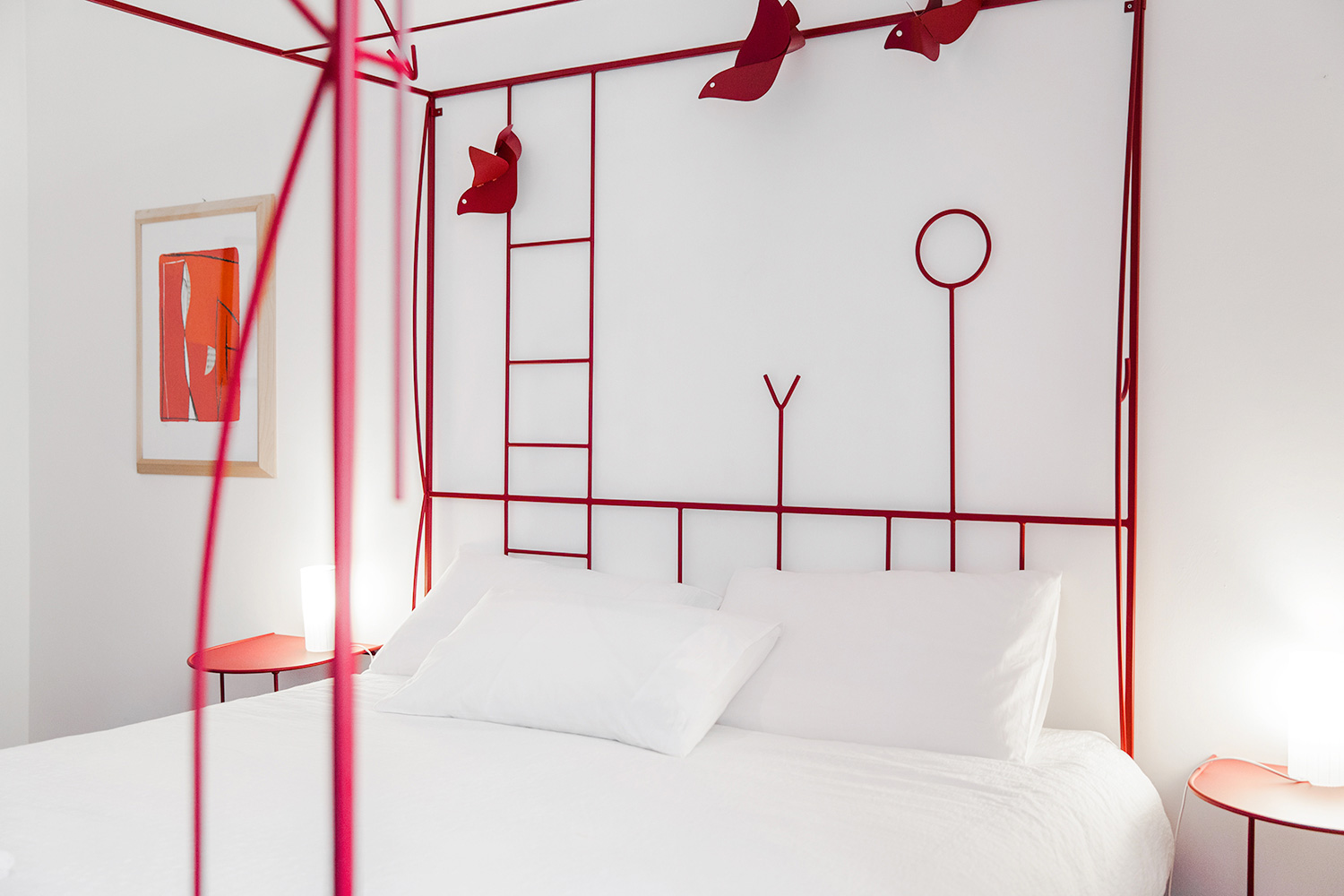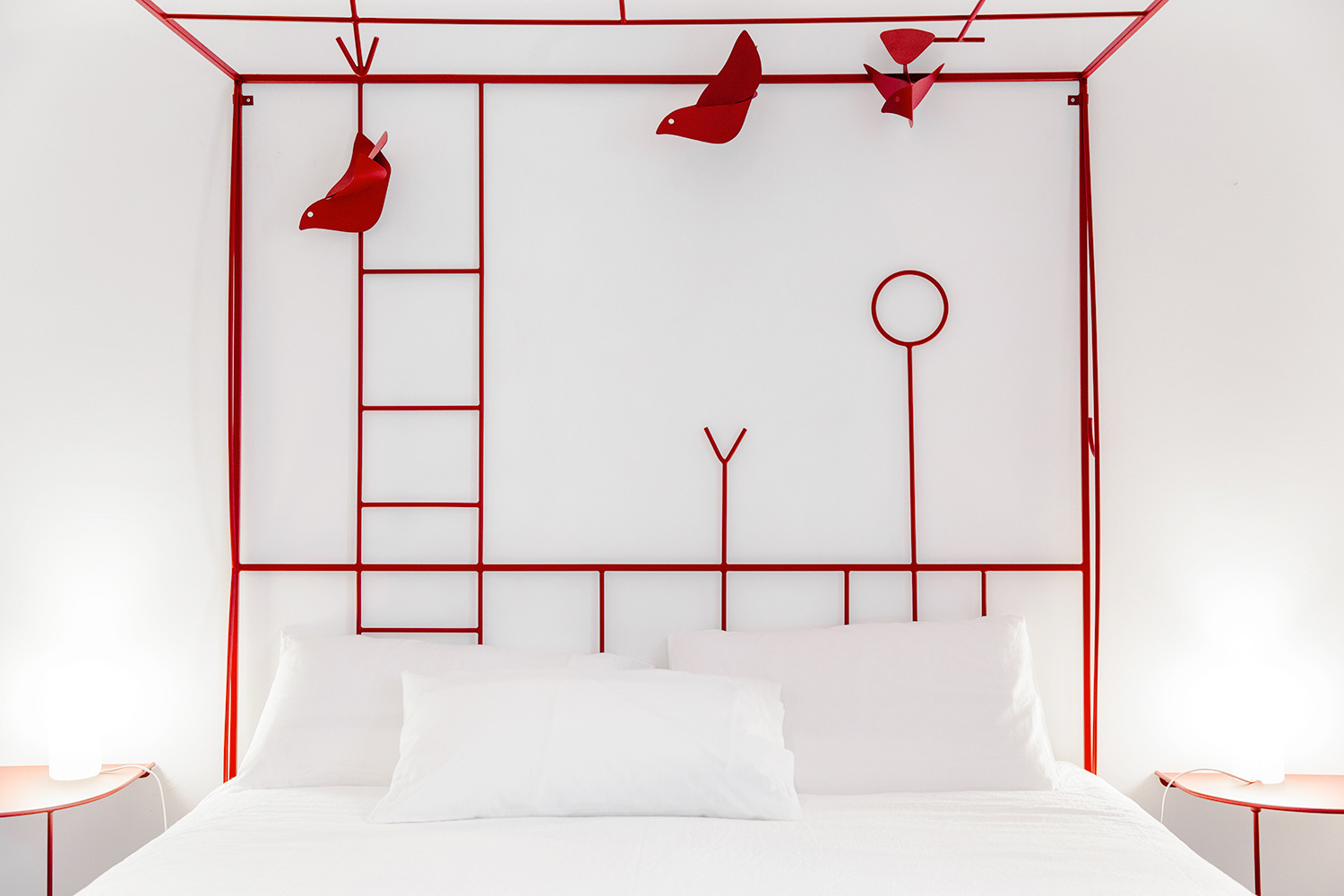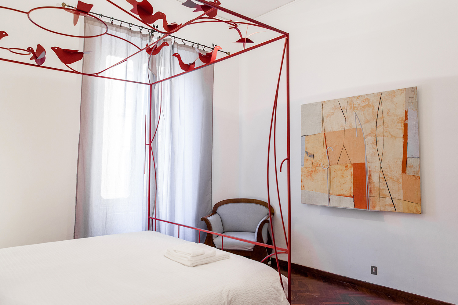 Intima e luminosa, circa 20mq, è fornita di un ampio letto matrimoniale disegnato da Tommaso Cascella e di un ampio armadio. Il pavimento è in parquet ed il letto è fornito di guanciali e set di lenzuola e coperte adatti per la stagione di visita.